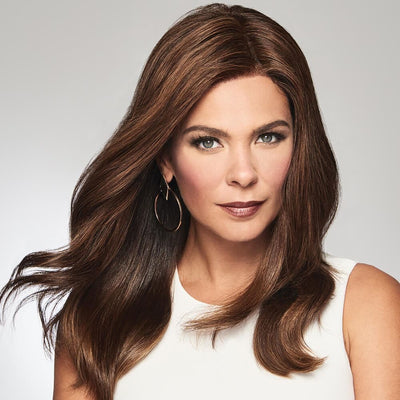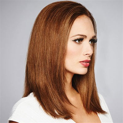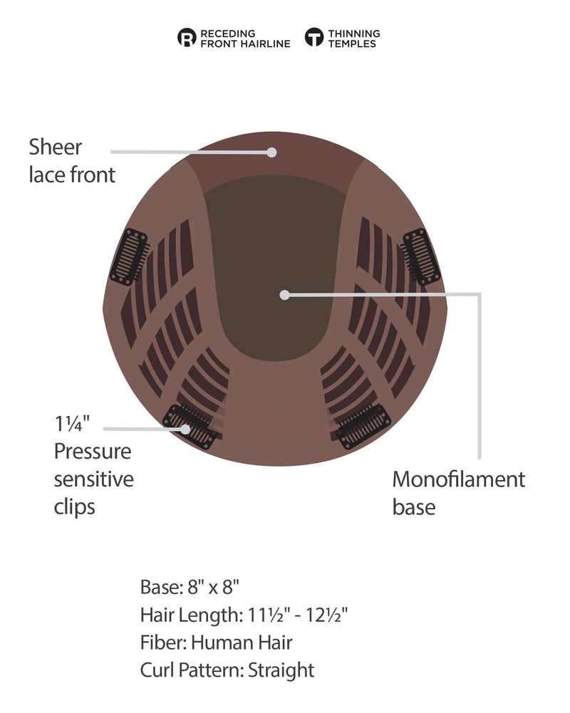 Enhance your hair with the volume and undetectable beauty of the Special Effect Topper. This hand-tied hair topper features monofilament and lace front construction to create the illusion of a natural hairline and hair growth. The larger 8" x 8" base provides volume and coverage where you need it most. Made from 100% human hair, it offers versatile styling options and can be professionally trimmed for any desired bang style. Perfect for hair loss along the part or crown area!