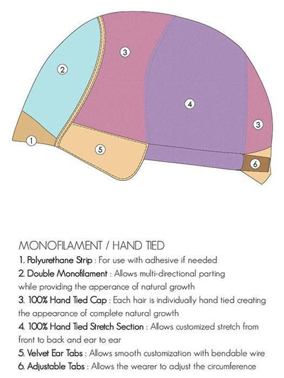 • Monofilament Top - Creates the illusions of natural hair growth and allows you to part the hair in any direction.