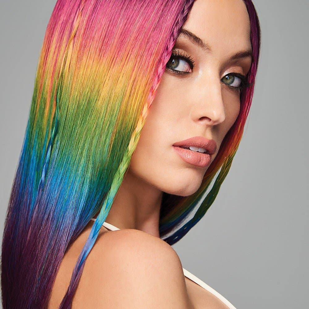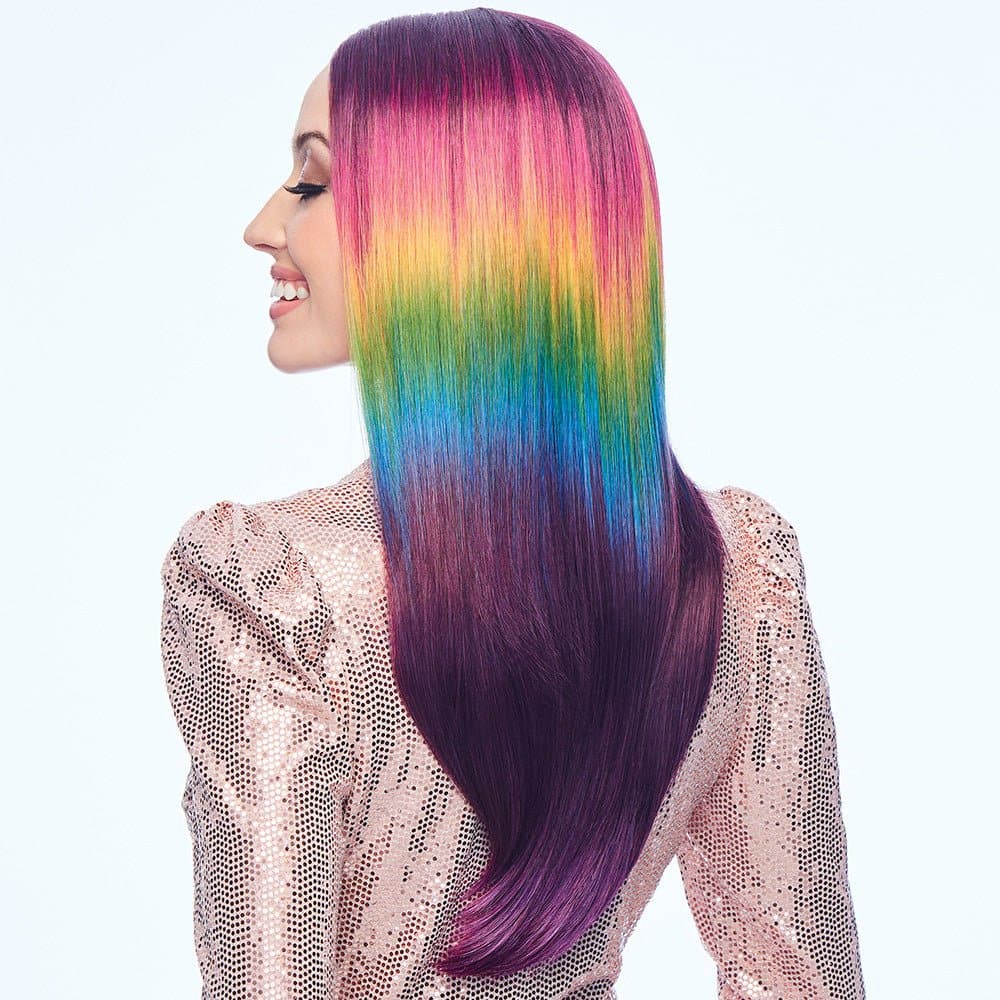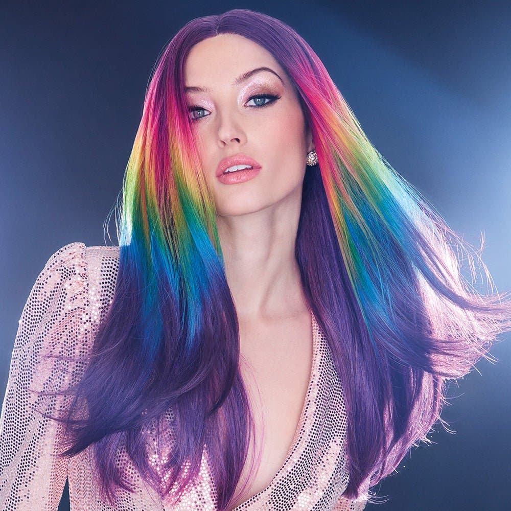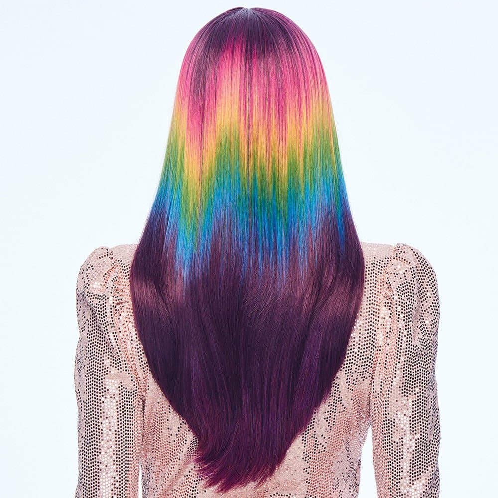 Party All Night by Hairdo is perfect for those seeking a trendy and vibrant look. The long, straight hair is a deep purple with a bright, iridescent rainbow for a striking contrast. The Tru2Life heat friendly synthetic hair gives you the option to wear the hair straight or glam up with curls and waves. The center monofilament part gives the appearance of natural hair growth, and the sheer lace front provides flawless hairline.