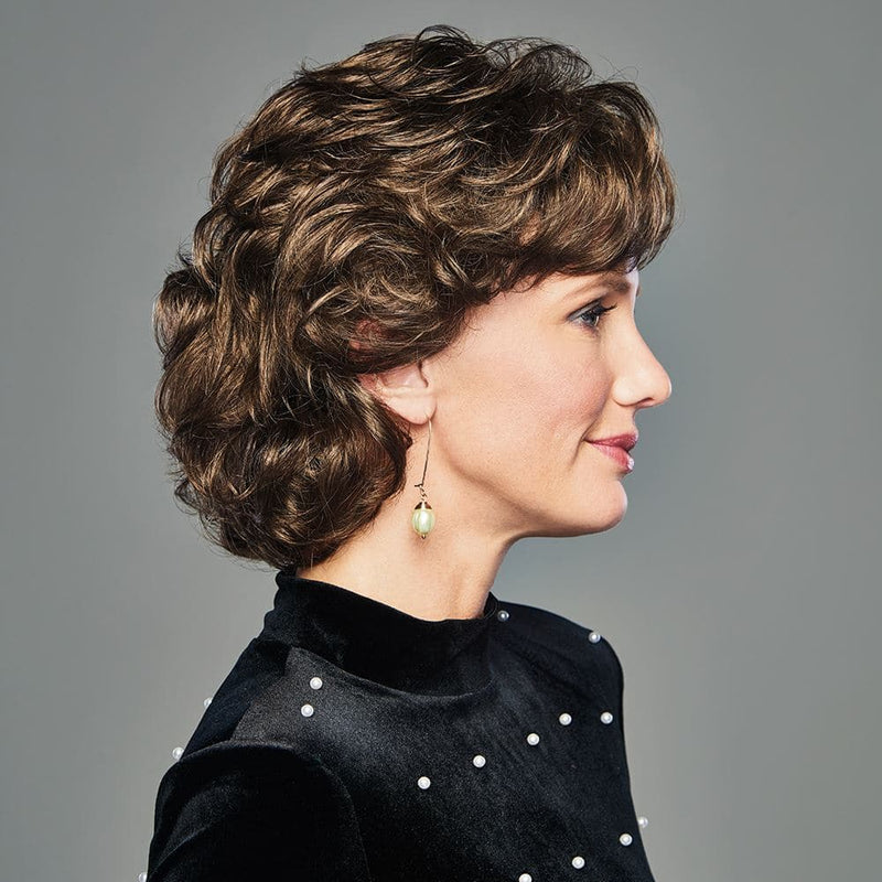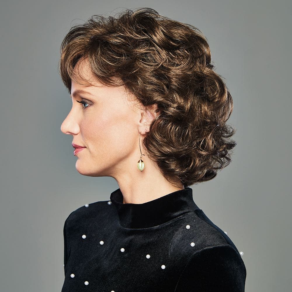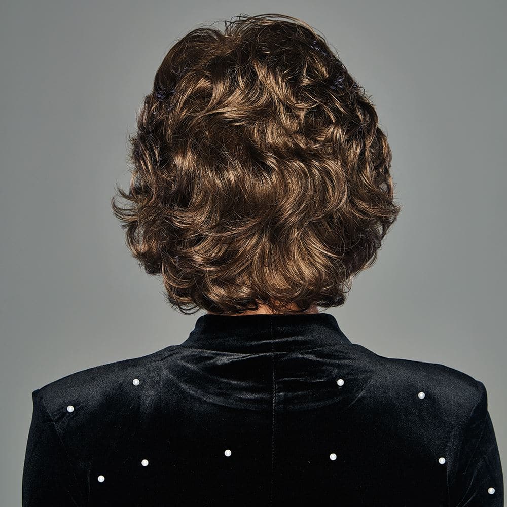 Built in versatility! Brush the sides forward or back for 2 different face framing looks. This style reflects recent changes to the fiber and curl pattern. The overall effect is to create a more natural healthy hair looking hairstyle. The curl pattern is more defined now and improved texture and feel to the fiber. Requires very little styling.