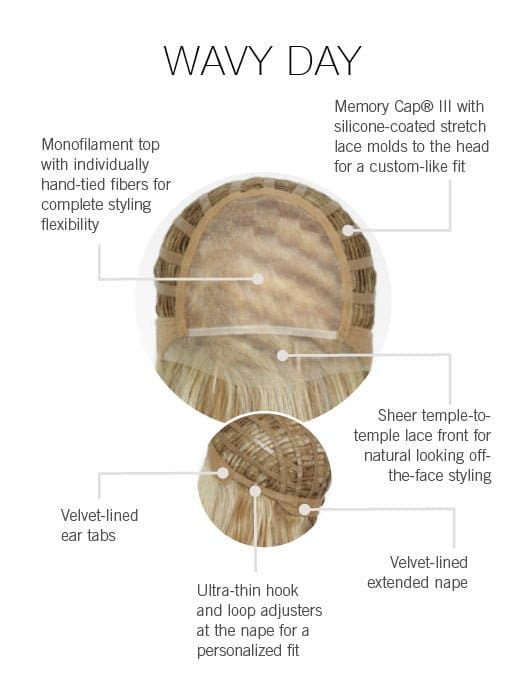 A trending look of softly styled waves, Raquel Welch’s Wavy Day from the Signature Collection offers a flattering look suitable for most face shapes. This “one-length” lob features airy textured ends that naturally move away from the face. Crafted with Tru2Life® Heat-Friendly Fiber, it ensures a natural appearance and feel. Start your day with a smile and a wave.