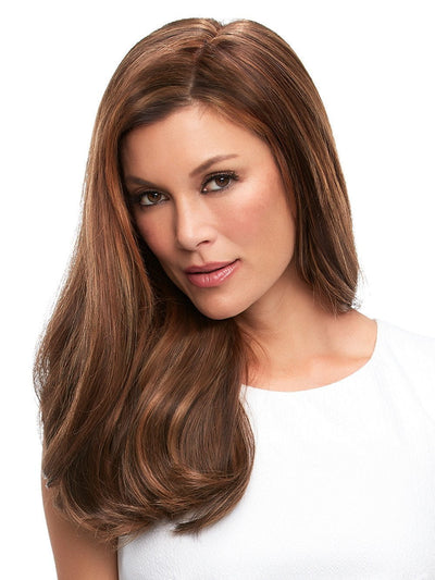 Top Full 18" By Jon Renau was designed with the comfort of a 100% hand tied stretch base. This long Remy human hair volumizer is worn over the entire crown, providing the most coverage of any clip in topper.