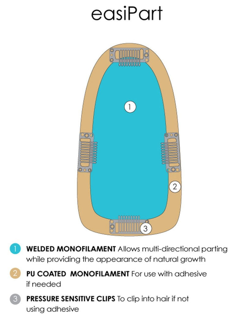 The easiPart 8" Remy Human Hair Topper by Jon Renau is a one-piece volumizer that adds instant thickness with naturally stunning Remy human hair. It clips in quickly and easily for all-day comfort and can be styled with heat to create any look. Available in lengths of 8, 12 and 18 inches.