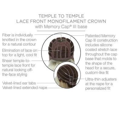 • Silicone coated stretch lace that molds to the shape of the head for a custom-like fit.