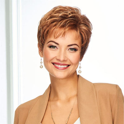 You’ll be spell-bound by the unique charm of Acclaim by Gabor. The short, waved layers seamlessly blend into a neck-hugging, tapered nape. Available in three cap sizes, this stylish synthetic wig is perfect for those seeking a chic hairdo.