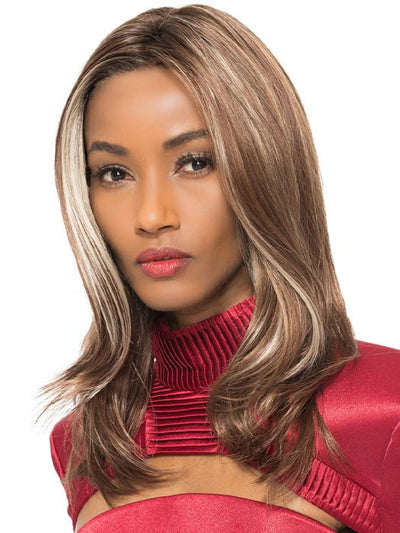 Bliss by Tressallure is a long, straight wig with natural layers to frame the face. This wig features a double knotted monofilament top and lace front that will ensure the appearance of a natural hairline, and allows you to part the hair anywhere you wish.