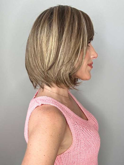 The Carley Wig by Envy is a cutting edge bob hairstyle with face framing layers and razored edges to create a soft natural appearance. The monofilament top construction creates the appearance of scalp and natural hair growth where the hair is parted. Tapering layers is the signature to this silhouette. Lightweight and natural looking, Carley is a wig to be envied. Also available in great shades of Gray. Watch Envy Carley video and read customer wig reviews below!