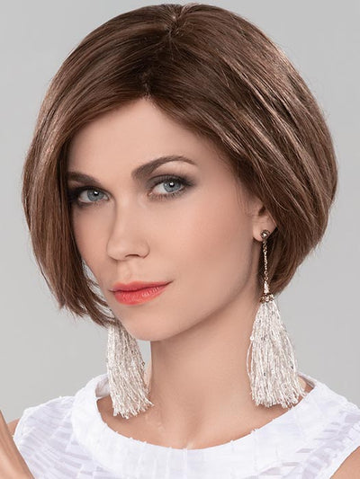 Cosmo II by Ellen Wille is part of their PUREurope Collection. This asymmetrical bob is made with human hair and has a lace front for a seamless hairline. The ear tabs and nape area have small silicone patches to help keep this wig in securely in place.
