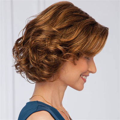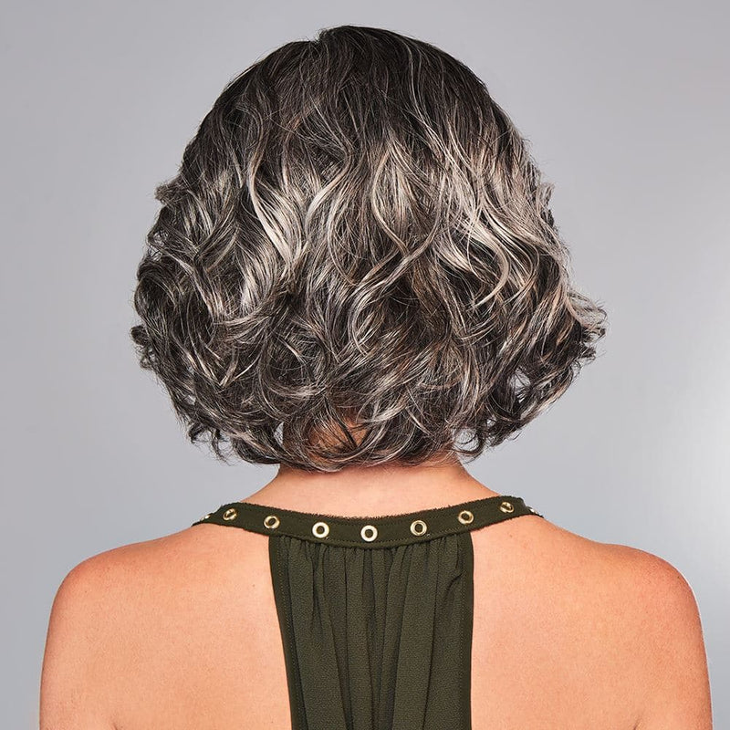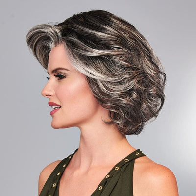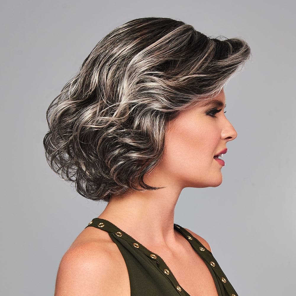 Experience the stunning effect of High Impact by Gabor from the Luxury Collection. This collar-length bob showcases layered waves with natural body for a flattering shape. The face-framing eyelash bang adds a perfect finishing touch. The lace front allows you to style the bangs full, partial, or blended into the hair. The hand tied monofilament part mimics the appearance of hair growing from the scalp.