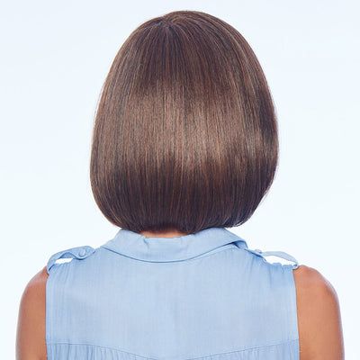 If you love the look of a classic bob, styled with a gentle, round brushed effect that curls the ends under – you’re in luck! The customizable full fringe is purposely left long to give you the option of wearing swept to the side or trimming to your preferred length to wear straight down.
