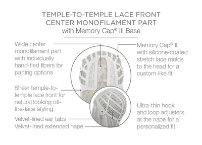Discover the trendy angled bob haircut of Raquel Welch’s On Point. The synthetic hair is cut into shorter, razor-cut lengths that elegantly caress the nape and extend to a clavicle length in the front. The Sheer Indulgence temple-to-temple lace front offers versatile styling, allowing the hair to be brushed toward the face or swept back. A center-placed monofilament area creates a natural middle part, aligning with current trends. This classic bob silhouette is updated with a modern edge and contemporary parting option. Crafted with Tru2Life® heat-friendly fiber, this wig is part of the Signature Collection.