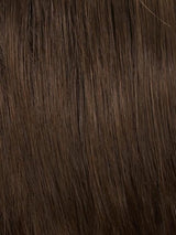 This mid-length, wavy layered ponytail clips on with claw comb or optional drawstring bun base. The style is reversible as well. Depending on which direction the hairpiece is applied the hair style appears more or less wavy.