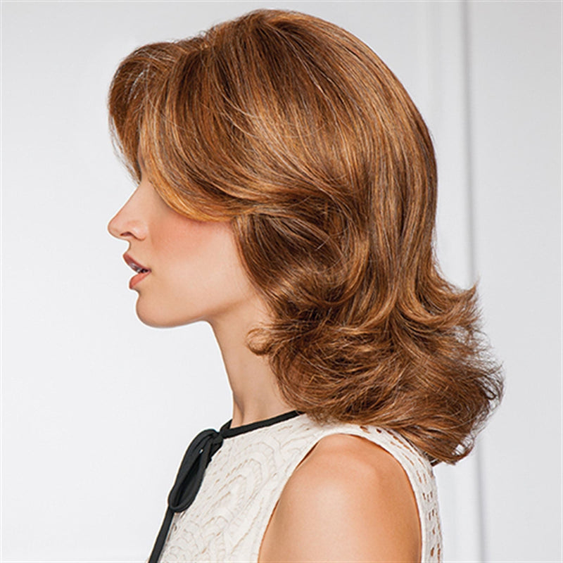 Part of Gabor’s Luxury Collection, the Socialite Wig features a layered hairdo with soft curls for a stunning hairstyle. The hand-tied monofilament part gives the appearance of hair growth, and the sheer lace front is great for a natural, off-the-face look. This elegant hairstyle transitions from shoulder length on the sides to below the shoulder in the back.