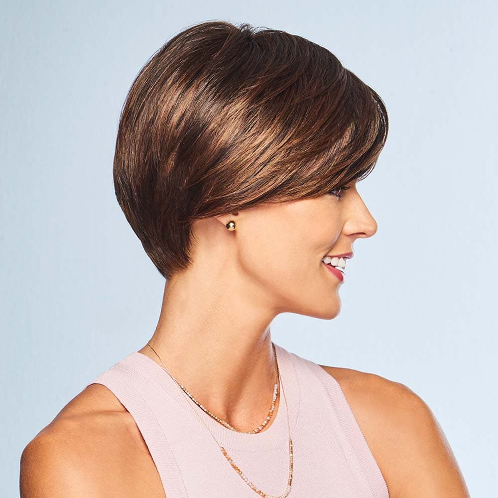 Discover timeless elegance of Sweet Escape by Gabor. Designed to be an instant favorite, the sleek hair falls perfectly at the clavicle. The razor-cut tapering and blunt ends create soft, effortless movement. Ideal for your busy lifestyle, this pixie wig boasts a fully hand-tied top for versatile parting options and an extended lace front from ear to ear. Great for styling the hair forward, behind the ears, or off the face. Part of the GABORĀ® Luxury Collection, this is your forever favorite.