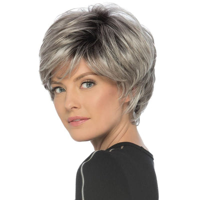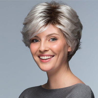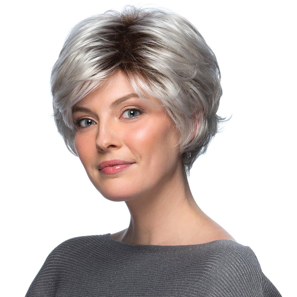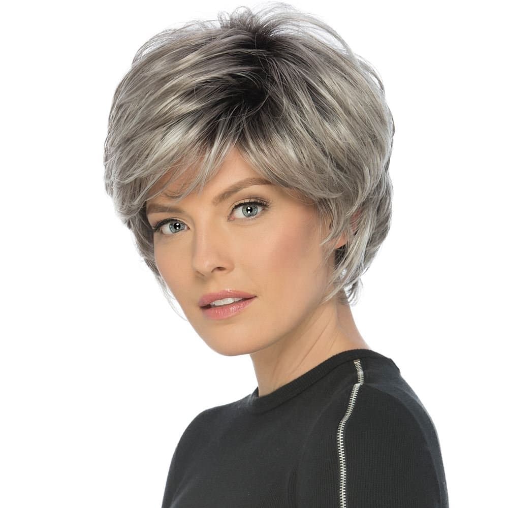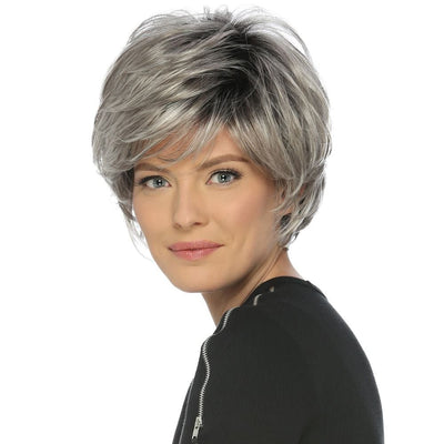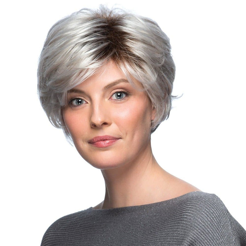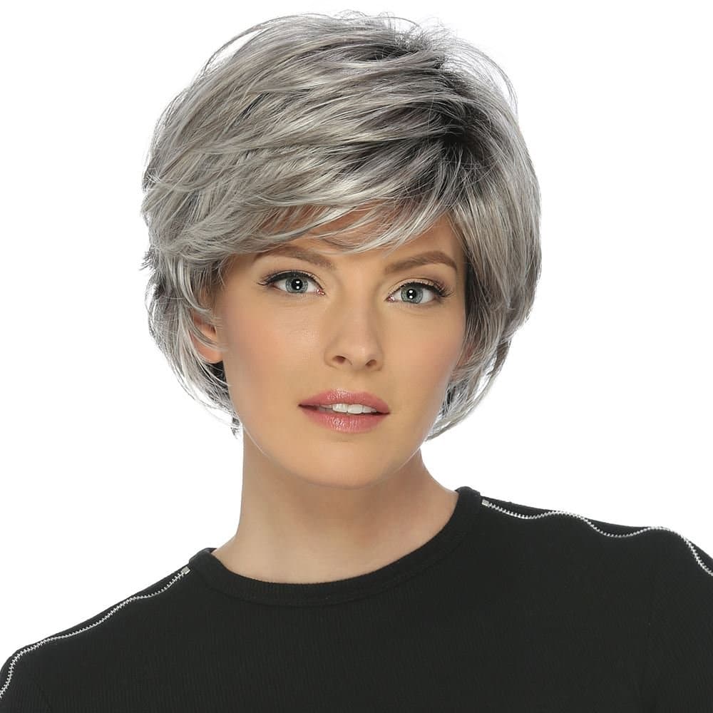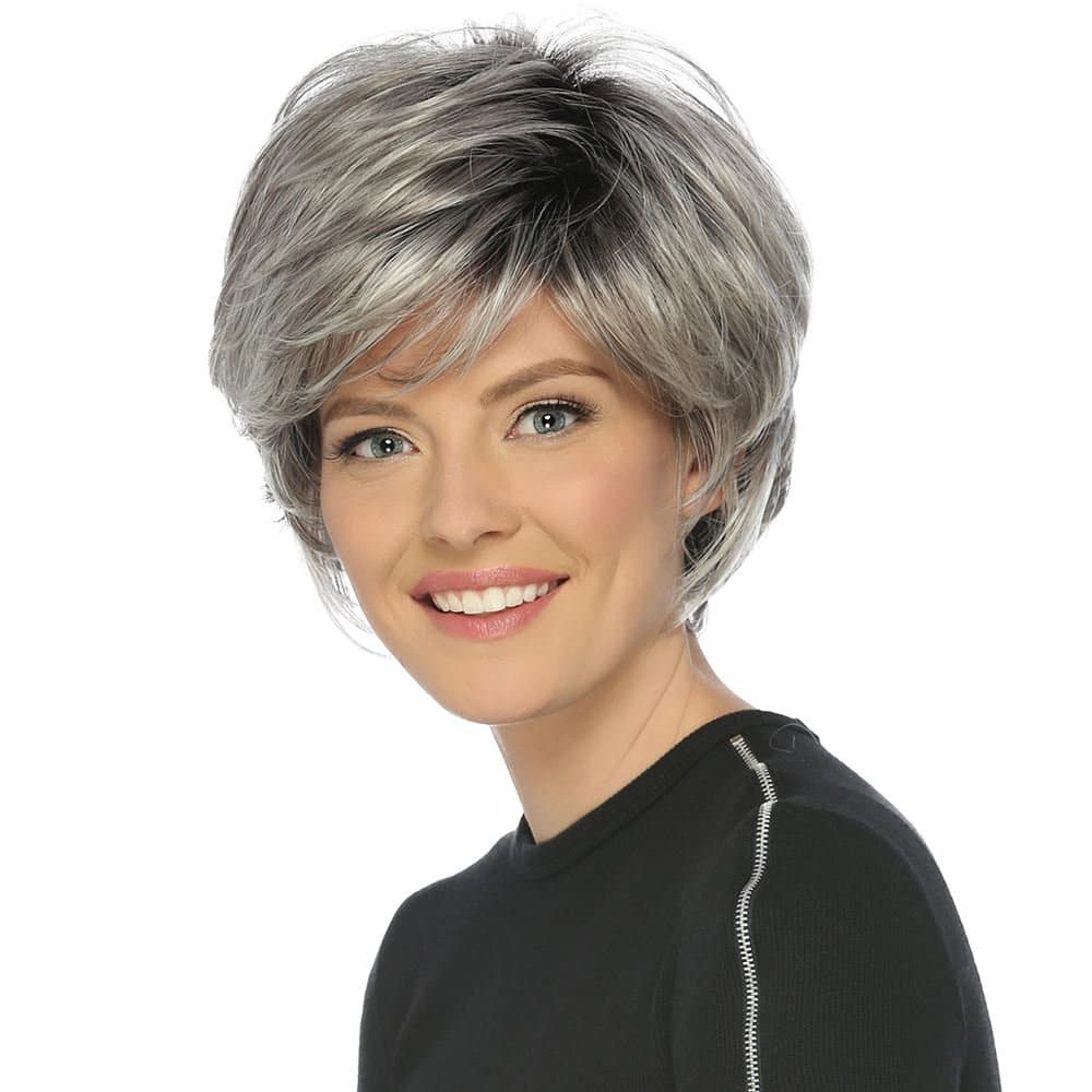 Discover the chic and sophisticated True wig. The short, feathery layered cut creates natural volume and movement. The full wispy bangs enhance its sophisticated appearance. Experience comfort with the Pure Stretch Cap. Part of the Classique Collection, this short synthetic wig is perfect for daily wear and special occasions.