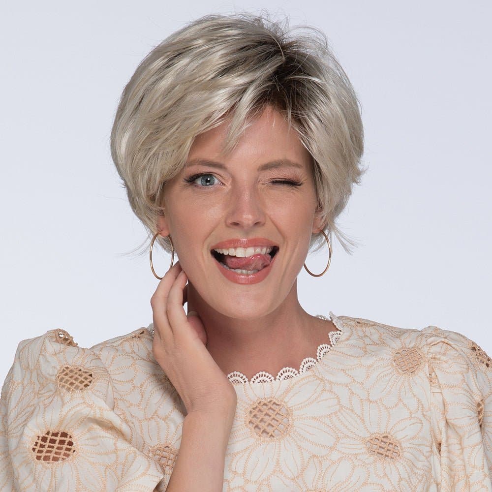 Style is shown in color: M16/88/60RT12 - Sunlit Blonde - Subtle light brown roots and delicately soft blonde dimension