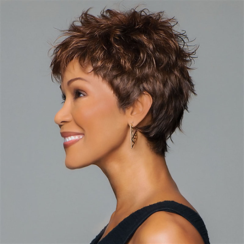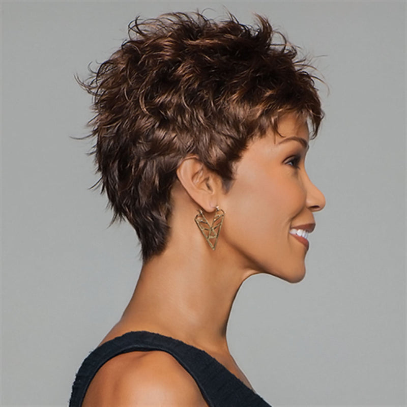 Discover Zest by Gabor. This short, textured boy cut wig, perfect for a quick change of pace. This ready-to-wear wig requires no fuss and provides a modern look straight out of the box.